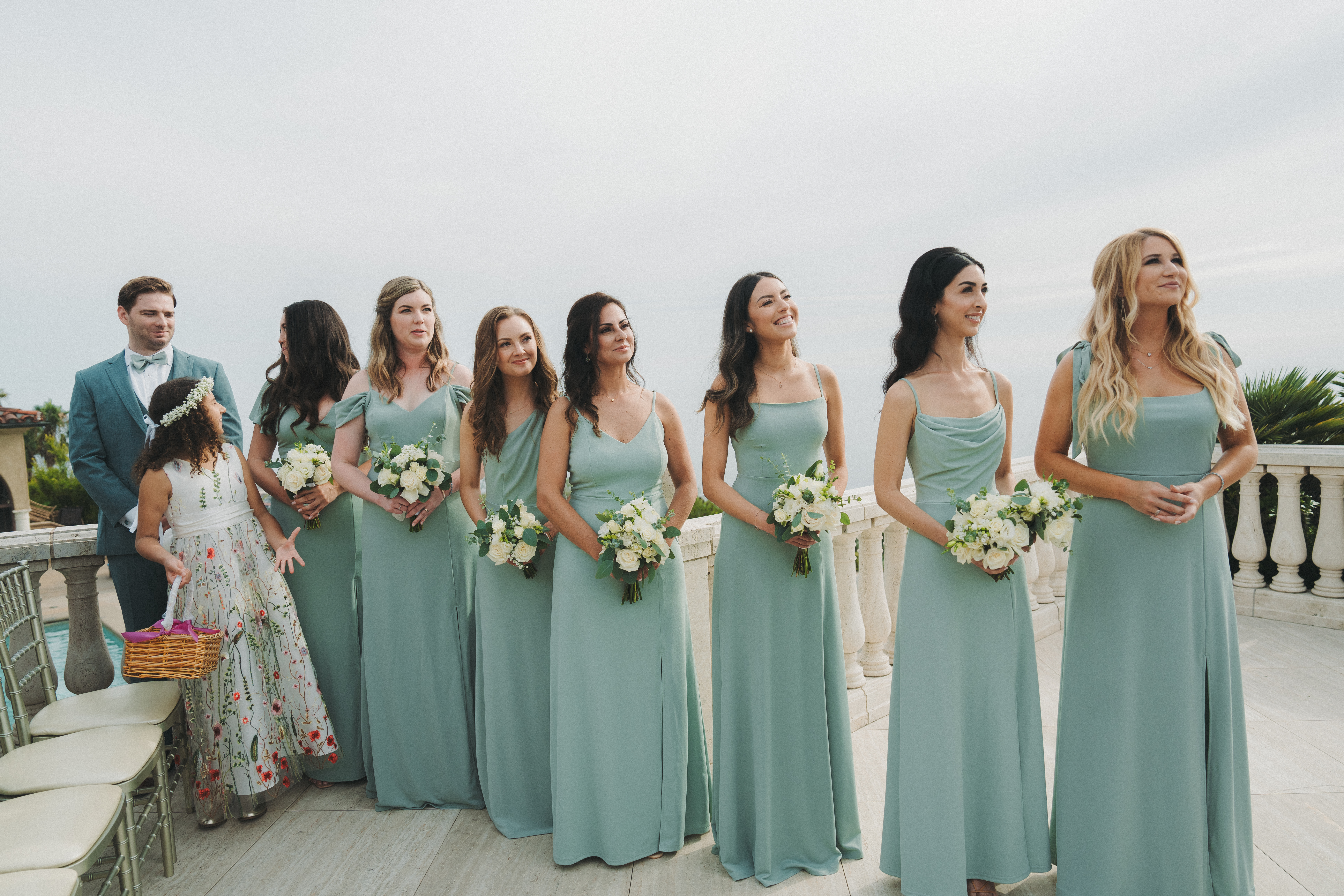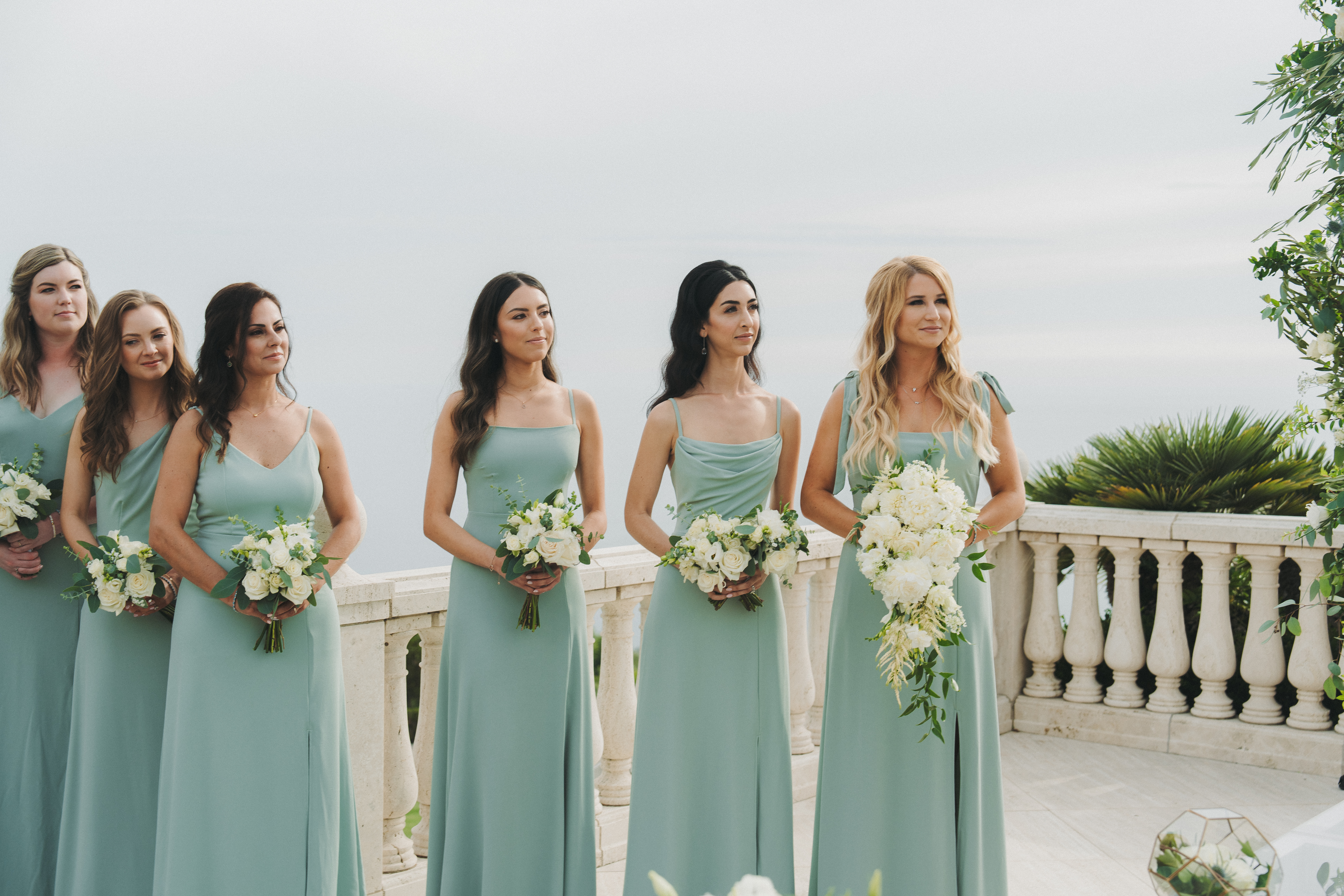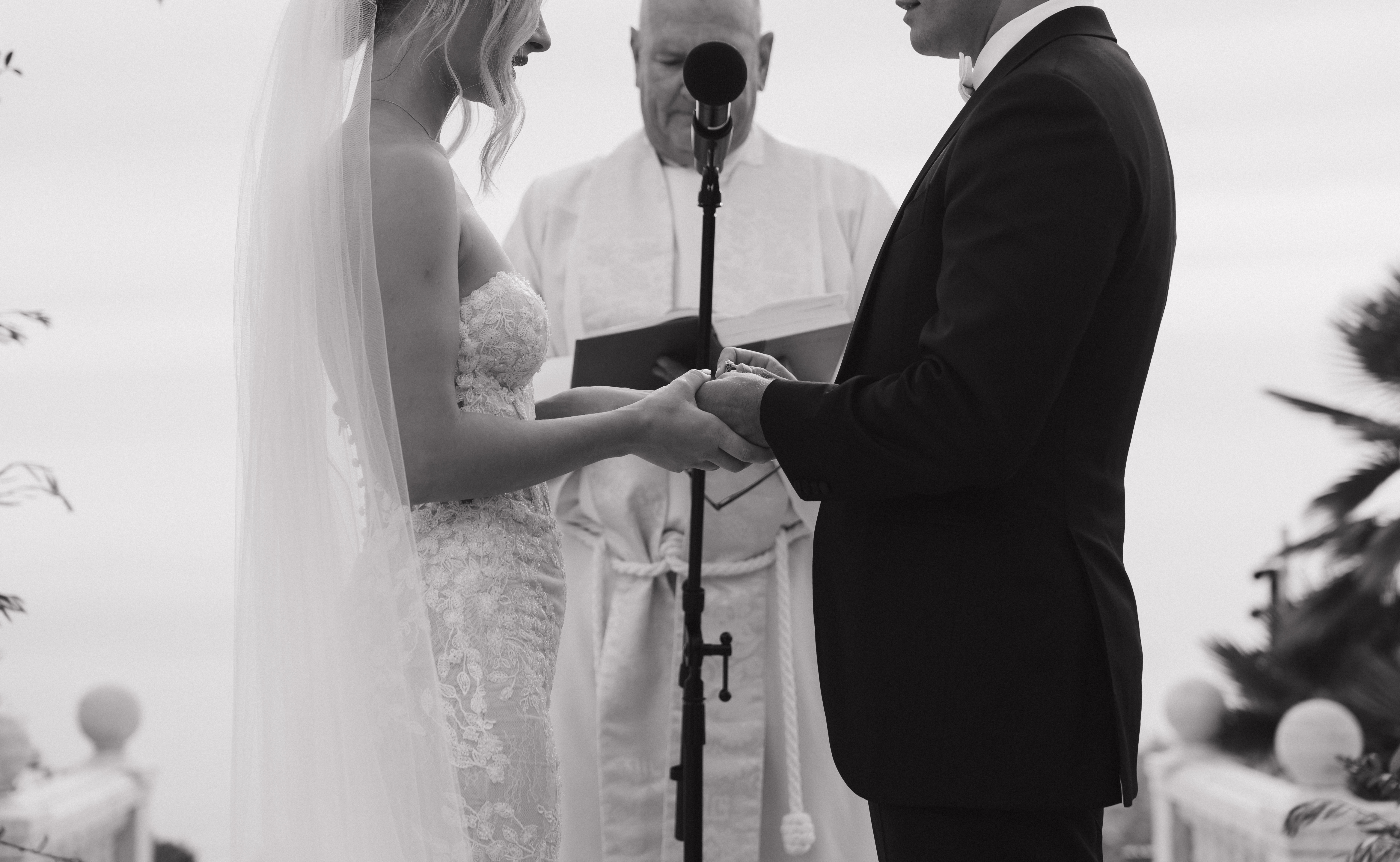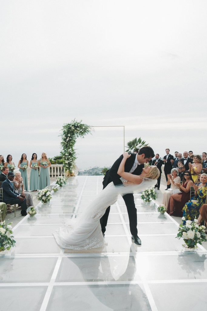 Our ceremony was set overlooking the Pacific Ocean. The villa where we were married has a beautiful fountain, which we covered in sturdy plexiglass to turn into a raised aisle. With our family and friends surrounding us, we said “I Do.” Having God be at the center of our ceremony was deeply important for us, and we were fortunate enough to have my childhood pastor (Episcopalian), officiate. We also had two friends speak during our ceremony. The first read the ever-loved passage from 1 Corinthians 13, our second speaker wrote a poem.