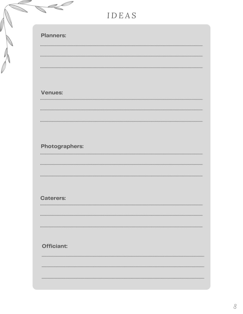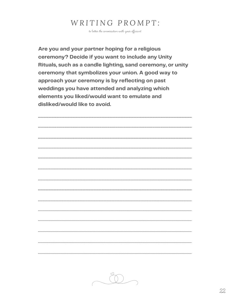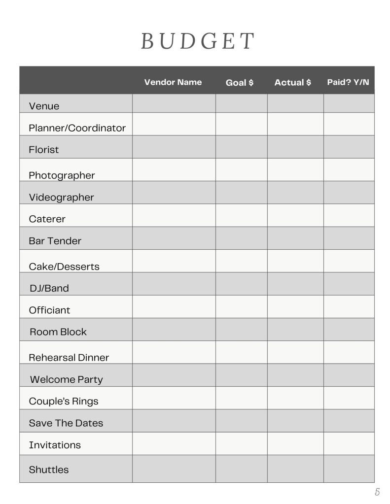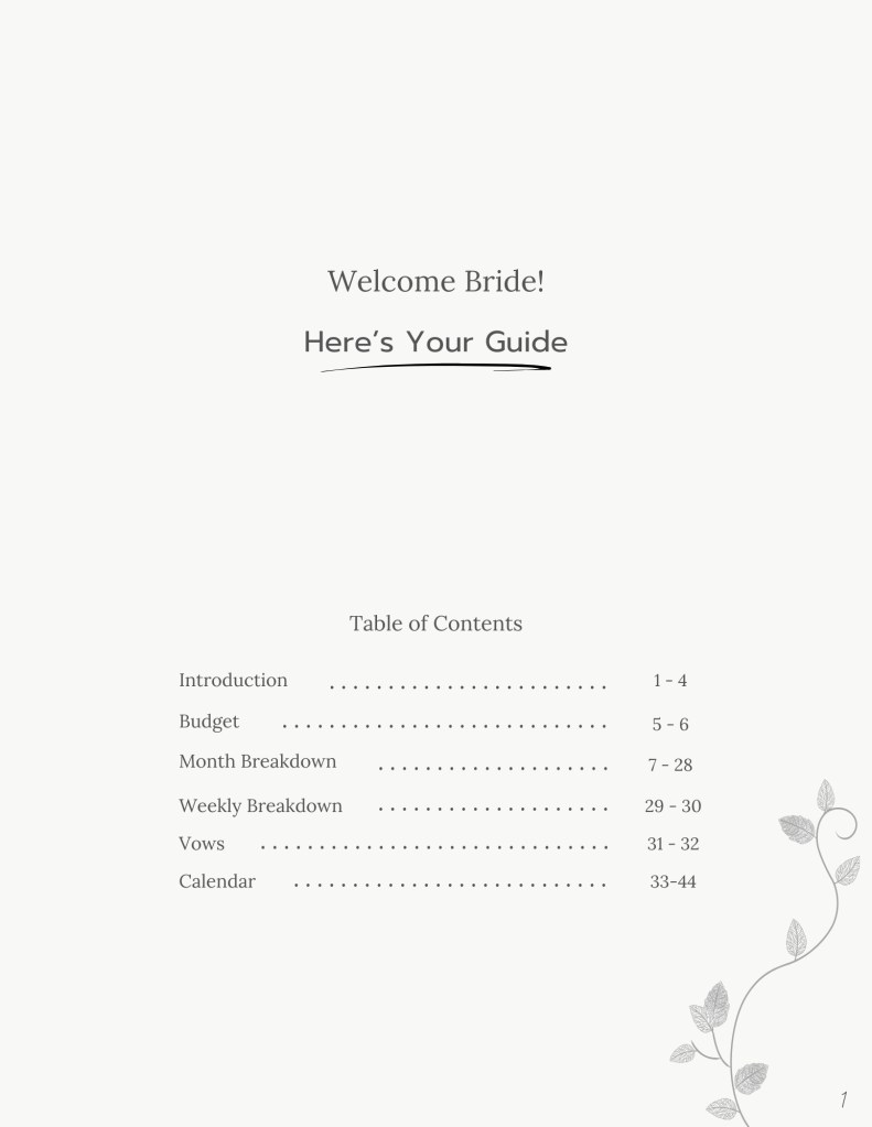 When beginning to plan our August 2023 wedding, I realized that there were many more moving parts than I ever expected. From setting a budget, to organizing and researching vendors, to having long discussions with Gabriel about exactly how we wanted our day to go…I ended up feeling overwhelmed and frustrated. Realizing I’d need to research and gather together every piece of information I could on how to throw a spectacular wedding, my 17 page extensive Google Doc became my holy grail of organization. This Google Doc ended up being sent at first to a few friends, then friends of friends…and eventually the idea of creating a comprehensive wedding guide for the masses was brought to my attention. Without further ado, here it is! A 47 page guide and planner detailing every step of the way with organized breakdowns mixed with journal prompts that will aid in vendor conversations, this guide is COMPLETE and the perfect tool/gift for anyone planning a wedding!